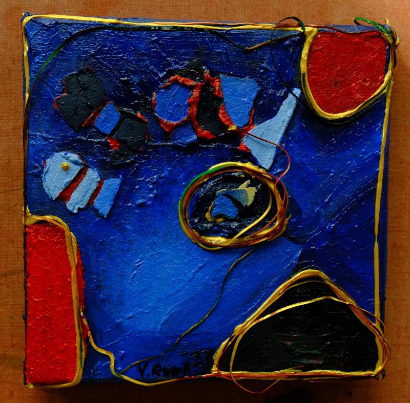 Yvonne Roos malt mit Acryl, Gouache und Ölfarbe, dazu Gipsbinden, Strukturpaste und Fenstermalfarbe. Ihre Bilder laden ein, aus dem grauen Alltag zu entfliehen und in eine bunte, spontane und kreative Welt einzutauchen.