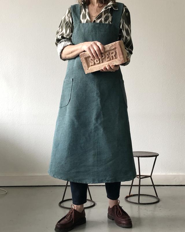 Sehr robuste Arbeitschürze, 70 % Baumwolle / 30 % Jute natürlich gefärbt ( Indigo /Teal )