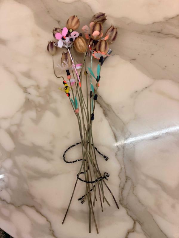 Blühendes aus Garten-Abraum, Wachs und Papier. Ideal für die winterliche Stube. Fragil und nicht ewig haltbar, aber doch recht lange.