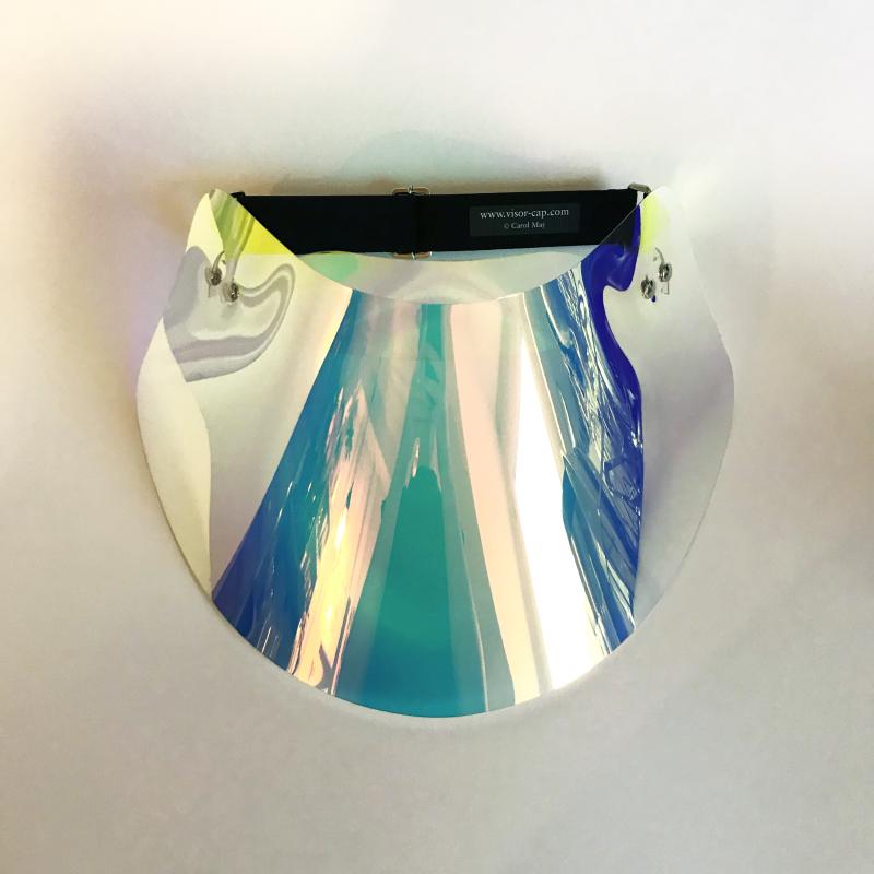 Mit diesem fancy, holographic schimmernden Visier ziehst du garantiert alle Blicke auf dich! Je nach Lichteinfall scheint es irisierend in diversen Farben. Es kann hochgeklappt als Cap oder runtergeklappt getragen werden. Bei heruntergeklapptem Visier hast du eine farbige, transparente Sicht durch verschiedenste Farbtöne.